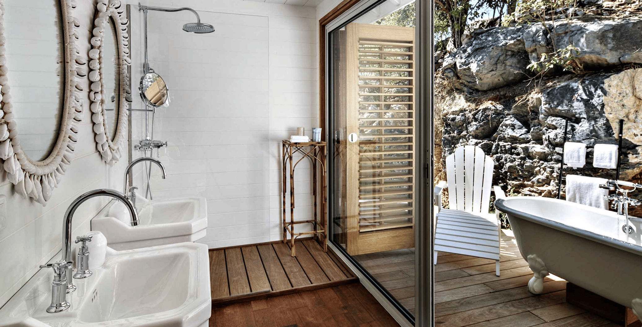 Airy bathrooms with open windows, inviting ocean breezes inside. Glamorous soaking tubs and walk-in showers create a relaxed, indoor-outdoor ritual with a touch of island indulgence.